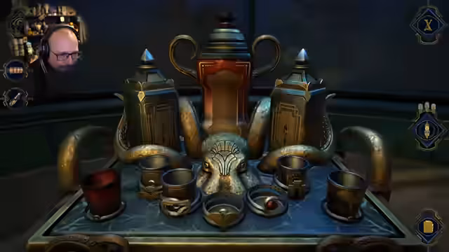 03:39:45Der Streamer befasst sich intensiv mit der Lösung verschiedener Rätsel im Spiel. Er interagiert mit einer Modelleisenbahn, die wie ein in Wasser gelegter Schwamm wächst, und einem Turmmodell, das aus Plaketten besteht. Nach anfänglicher Verwirrung über die Funktionsweise und die Zusammenhänge der Teile, gelingt es ihm, das Turmmodell erfolgreich zusammenzusetzen. Er beschreibt diesen Prozess als anstrengend, aber befriedigend, und äußert Bewunderung für die Detailverliebtheit des Spiels.