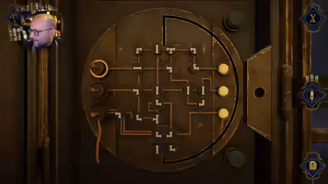 03:24:41In einem Raum stößt der Streamer auf ein Rätsel im Stil des Spiels „Lights Out“, bei dem durch das Betätigen von Schaltern ein elektrisches System zum Leuchten gebracht werden muss. Nach anfänglichen Schwierigkeiten und frustrierenden Versuchen gelingt es ihm durch systematisches Ausprobieren, das Rätsel zu lösen und einen kurzen Moment voll funktionsfähiger Elektrik zu erleben. Diesen Durchgang beschreibt er als besonders stolz machend Moment.