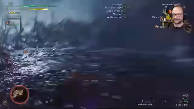 01:12:19Der Streamer wird von einem Schleim-Oktopoden angegriffen und stellt fest, dass er in Lava steht. Er rollt, um die Feuerpest loszuwerden und greift die richtigen Stellen des Gegners an. Er bemerkt, dass der Gegner nach einem Angriff an einer verwundbaren Stelle getroffen werden kann und beharkt ihn von Arm zu Arm. Er fällt in die Lava und verbrennt, wird aber von seinem Tier gerettet. Der Streamer wechselt auf seine Wasserwaffe, da diese effektiver gegen den Oktopoden ist. Er reitet auf seinem Tier und greift den Gegner an, wobei er eine Wunde auf dem Rücken des Gegners verursacht. Er stellt fest, dass die Wasserwaffe viel besser gegen den Gegner ist und überlegt, wie es wäre, den Gegner in einer Gegend ohne Lava zu bekämpfen. Er bedauert, dass der Gegner in ein anderes Gebiet fallen wollte und nimmt ihn mit.