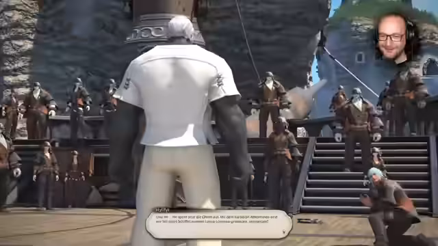 02:37:18Admiral Mervip konfrontiert Sickard, den Vertreter der Henkershorde. Sie betont, dass Limsa Lominsa auf dem Rücken der Piraterie errichtet wurde, aber auch die Notwendigkeit der Weiterentwicklung und Anpassung. Sie argumentiert, dass das Kaiserreich kurz vor dem Niedergang steht und Limsa Lominsa die Handelswege beherrschen wird. Sickard hingegen beharrt darauf, dass sie Piraten sind und für sie kein Platz in Mervips rosigen Traum von der Zukunft ist. Mervip entgegnet, dass die Meere für sie nicht offen stehen werden und droht indirekt mit Krieg. Sickard fordert ein Duell, um den Zwist beizulegen, was Mervip akzeptiert. Es wird spekuliert, dass der Chef von Limsa sterben könnte, aber der Frieden für das Volk wichtiger ist. Mervip erhält Anerkennung für ihre Coverage und ihr Aussehen. Der alte Hilf hier taucht auf und ergreift das Wort, um die Piraten an ihre Pflichten zu erinnern.
