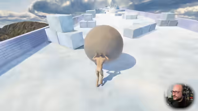 03:04:41Der Streamer kämpft mit der Physik des Felsens, der sich als sehr leicht beim Aufprall, aber sehr schwer beim Schieben erweist. Er versucht, den Felsen gerade zu schieben, was sich als schwierig erweist, da er oft abweicht und droht, den Berg hinunterzufallen. Die anfänglich als einfach empfundene Aufgabe wird zunehmend frustrierender, insbesondere durch Hindernisse wie 'Mühlenräder im Boden' und rote Fässer, die respawnen. Der Streamer entdeckt eine Steuerungsanleitung, die ihm hilft, die Kamera besser zu kontrollieren, was das Spielerlebnis erheblich verbessert. Trotzdem bleibt die Aufgabe mühsam, und der Ball rollt immer wieder zurück, was zu wiederholten Neustarts führt. Die Interaktion mit dem Chat und die Kommentare der Zuschauer spiegeln die Frustration und den humorvollen Umgang mit den Schwierigkeiten wider.