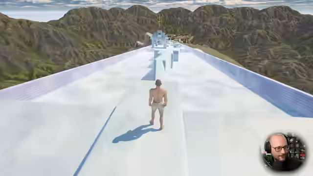 03:25:22Nach einigen Versuchen und Fehlern beim Schieben des Felsblocks stellt der Streamer fest, dass das Spiel einfacher wird, je öfter man denselben Weg zurücklegt. Dies führt zu einer Reflexion über den 'kafkaesken' Charakter des Spiels und der Erfahrung des Lebens. Während des Spielens interagiert der Streamer stark mit dem Chat, beklagt sich über unbeabsichtigte Ballbewegungen, kommentiert die Grafik humorvoll und diskutiert mit den Zuschauern über Steuerung, Geschwindigkeit und die Philosophie hinter der endlosen Aufgabe.