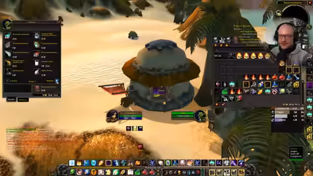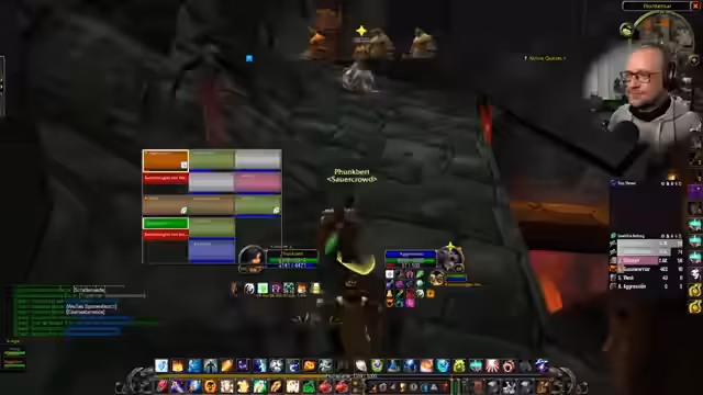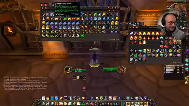 02:41:12Nach einer Pause wurde der Fokus wieder auf den WoW-Raid gelegt. Es fehlten noch ein paar Teile vom 0,5er-Tier-Equipment, weshalb eine Questreihe gestartet wurde. Der Streamer prüfte die Gildenbank nach benötigten Gegenständen wie den Gläubiger-Gürtel und -Handgelenke und bat im Chat um Informationen zu deren Herkunft. Um Platz im Inventar zu schaffen, wurden nicht benötigte Gegenstände wie Kern der Elemente und Wildwedel auf eine Mats-Bank geschickt.
