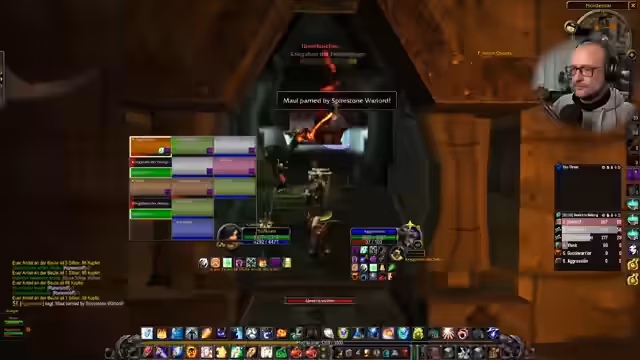 07:34:31Der Raid zieht in die Blackrockspitzen ein. Der Streamer agiert als Tank und zieht die Mobs gezielt auf seine Gruppe, um den Schaden zu begrenzen. Er weist auf bestimmte Gefahren im Dungeon hin, wie die auf dem Boden befindlichen Käfer. Er erklärt die Vorgehensweise für verschiedene Mobs und Bosse, betont die Notwendigkeit, bestimmte Ziele zu fokussieren und gibt strategische Hinweise, um den Raid reibungslos durchzuführen.