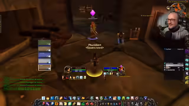 09:48:57Der Stream beginnt mit der Vorbereitung auf einen Raid in World of Warcraft. Der Fokus liegt auf der Bewältigung eines speziellen Events in Goldhain. Der Streamer organisiert die Gruppe, teilt Rollen wie Tank und Heiler zu und diskutiert die Taktik, um bestimmte Gegner wie Arcana Smith und Fireguard Destroyer effektiv zu besiegen. Die Kommunikation über Spielmechaniken, z.B. das Aggro-Management und das Positionieren von Pets wie einer Eule, ist zentral für den weiteren Verlauf.