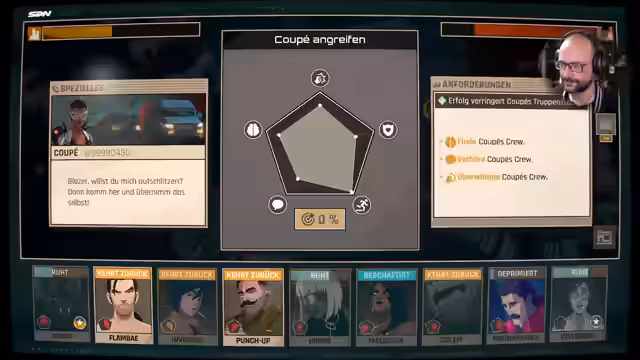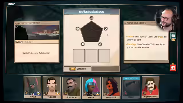 03:53:45Die Stimmung im Spiel ist angespannt, da es regnet und die Charaktere sich den Herausforderungen stellen müssen. Eine der ersten Missionen beinhaltet die Rettung von Walen, die ins Meer zurückgeschoben werden müssen, bevor sich eine Menschenmenge versammelt. Dabei ist Vorsicht geboten, um die Wale nicht zu verletzen. Eine weitere Aufgabe betrifft den Schurken Kotzbrocken, der den Regen nutzt, um Zivilisten in einem Stadion zu terrorisieren, indem er Kotze in die Luft spuckt. Die Spieler müssen ihn mit der nötigen Gewalt festnehmen. Anschließend gilt es, ein führerloses Auto zu stoppen, bevor es in eine Nachbarschaft kracht, und alle Zivilisten in Sicherheit zu bringen. Dies erfordert schnelles Handeln und das Hacken des Autos, um es zum Stehen zu bringen. Die Missionen erfordern eine Kombination aus Kraft, Charisma und Intelligenz, um erfolgreich zu sein, und das Team muss strategisch ausgewählt werden, um die besten Ergebnisse zu erzielen.
