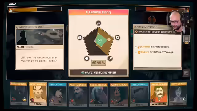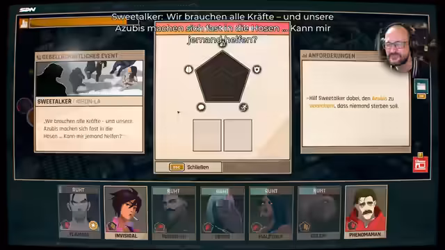 04:00:26Die Spieler stehen vor einer Reihe von unterschiedlichen Missionen, darunter die Bekämpfung einer Käfer kontrollierenden Angreiferin und die Rettung eines Bauern vor Bienen. Dabei ist es wichtig, die Stärke des Teams richtig einzuschätzen, um die Missionen nicht zu überfordern. Eine weitere Aufgabe ist die Teilnahme an einem Interview, um die Öffentlichkeit über das Phoenix-Programm zu informieren und zu versichern, dass das Team nun die Guten sind. Hierbei wird entschieden, ob man sich auf Fakten konzentriert oder das Team übertrieben lobt. Parallel dazu muss die Assistentin des Bürgermeisters zum Flughafen begleitet werden, bevor ihr Flug abhebt. Das Team muss auch eine Entscheidung treffen, wie mit Rotring umgegangen wird: auf Nummer sicher gehen und Informationen sammeln oder in die Offensive gehen, um Rache für Chase zu nehmen. Die Spieler müssen ständig die Fähigkeiten ihrer Helden managen und sie strategisch einsetzen, um die vielfältigen Herausforderungen zu meistern und die Stadt zu schützen.