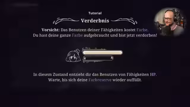 03:35:34Das Spiel zeichnet sich durch eine besondere Farbgebung aus, bei der besiegte Gegner ihre Farbe verlieren und grau werden, selbst wenn sie zuvor farbig waren. Dies wird am Beispiel eines grünen Moos-Schlüsselbund-Barts verdeutlicht, der nach seiner Eliminierung nur noch graue Überreste hinterlässt. Im Gegensatz dazu stehen komplett weiße Ranken mit roten Blüten, die eine visuelle Abwechslung bieten. Eine neue Pinseltechnik namens Farbsprint wird freigeschaltet, die es ermöglicht, sich für kurze Zeit in Farbe zu verwandeln und unverwundbar zu sein, was jedoch Farbe verbraucht. Das Spiel integriert auch eine Verderbnis-Mechanik: Wenn der Spieler seine gesamte Farbe aufgebraucht hat, wird er verdorben, und das Benutzen von Fähigkeiten entzieht dann Lebenspunkte. Die Regeneration der Farbreserven ist entscheidend, um diesen Zustand zu vermeiden. Die Bewegungsabläufe und Animationen werden als sehr flüssig und ansprechend beschrieben, was das Spielerlebnis zusätzlich bereichert.