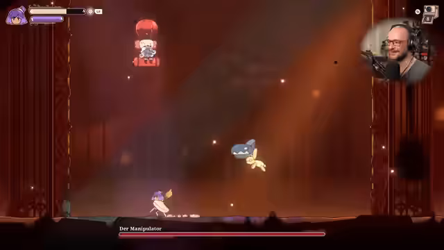 04:24:43Ein neuer Mechanismus namens 'Fluch der Fäden' wird aktiviert, der den Spieler daran hindert, durch Gegner zu dashen. Dies führt zu einem Kampf gegen den Boss 'Kubikus', dessen einziger schwacher Punkt ein weißes Helmchen ist. Nach einem anfänglichen Scheitern gelingt es dem Spieler nach mehrfachen Versuchen, den Boss mit präzisen Angriffen zu besiegen und erhält als Belohnung eine Heilung. Der Sieg mit nur verbleibendem Leben wird als triumphal gefeiert.