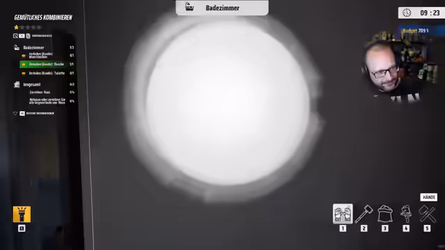 02:23:17Im Zeitfenster von 8597 bis 8630 untersucht der Streamer die Materialien im Haus und stellt fest, dass man Tab-Menü hat, um zu sehen, was man darf und nicht darf. Er bemerkt, dass er Dinge, die er eigentlich nicht mitnehmen sollte, eingesammelt hat und dies zurückbringen muss. Im Zeitfenster von 8630 bis 8665 beginnt er mit dem Abbau von Stühlen und anderen Gegenständen und zeigt Begeisterung für das Spiel. Im Zeitfenster von 8667 bis 8678 bezeichnet er es als 'magisches Haus'. Im Zeitfenster von 8681 bis 8710 sammelt er Müll ein und stellt fest, dass der Müllsack gefüllt werden kann, er jedoch herausfinden muss, wie man ihn wieder leer macht.