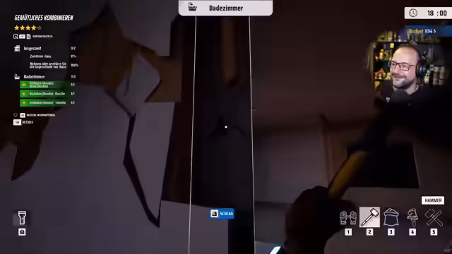 03:07:43Im Zeitfenster von 11263 bis 11295 lobt der Streamer die Qualität des Spiels, das er nur für 13 Euro gekauft hat und das seiner Meinung nach fünfmal mehr bietet, als er sich vorgestellt hat. Er erwähnt, das Spiel im Bundle mit anderen Simulatoren zu erhalten. Er stellt fest, dass Grafisch das Spiel zwar gut ist, aber Gegenstände sich wiederholen können. Im Zeitfenster von 11296 bis 11323 vergleicht er die Umgebung und die Gegenstände im Haus mit seinem eigenen Stream-Zimmer und bemerkt die vielen Details wie einen Motorradhelm, einen Fahrradhelm und einen Toaster mit passendem Symbol. Im Zeitfenster von 11324 bis 11345 kritisiert er die mangelnde Unterscheidung von Gegenständen und wünscht sich mehr Diversifikation in zukünftigen Updates. Im Zeitfenster von 11346 bis 11375 beginnt er mit dem Abbau der Dusche, die er besonders beeindruckend findet, und spekuliert über die Abbauweise.