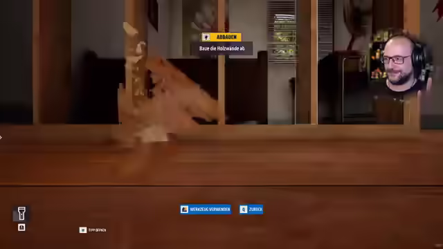 03:43:10Es wird vermutet, dass es in jedem Level einen sammelbaren Gegenstand als Trophäe gibt, möglicherweise den goldenen Hirsch oder das goldene, vierbeinige Flatterviech. Der Streamer erinnert sich daran, dass es diese Möglichkeit gab, und findet das Spielgeschehen großartig. Ein Bild wird zerstört, um einen Durchgang zu schaffen. Der Streamer berichtet von eigenen Erfahrungen beim Einreißen einer Wand und den damit verbundenen Schwierigkeiten. Es wird überlegt, ob das Nummernschild des Autos mitgenommen werden kann. Jemand im Chat berichtet von Architektenerfahrungen mit Leuten, die tragende Wände abreißen, ohne nachzudenken. Es wird spekuliert, was das Schutzrohr am Haus sein könnte, möglicherweise ein Blitzableiter oder eine Taubendrohnenabwehr. Der Streamer äußert sich begeistert über das Spiel und seine Details und lobt, wie sauber alles kaputt gemacht werden kann. Das Tutorial am Anfang wurde als zu lang empfunden. Ein Fenster soll für Crunchy Cupcake abgebaut werden. Der Streamer erlebt multiple Universen beim Versuch, ein Brecheisen zu benutzen, und verpackt das Fenster anschließend sicher.