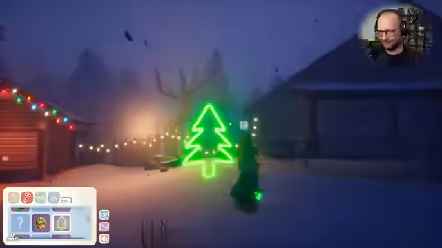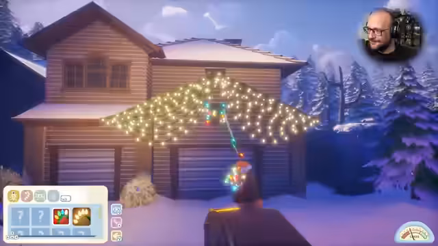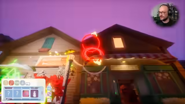 05:45:59Der Streamer reflektiert über das Weihnachtsbaum-Schmücken mit der Familie und vergleicht dies mit dem Dekorieren im Spiel. Dabei äußert er sich satirisch über Umweltbedenken bei Lametta und verteidigt traditionelle Dekorationen. Die Szene zeigt detaillierte Hausverzierungen mit Schleifen, Bällen und Lichtern, wobei die liebevolle Handhabung der Spielmechaniken hervorgehoben wird.