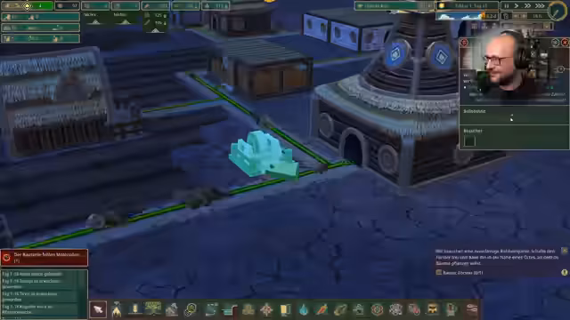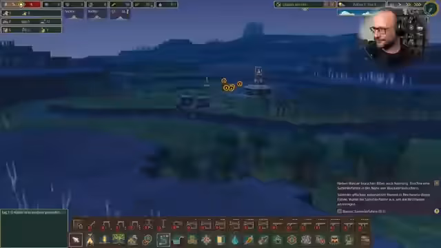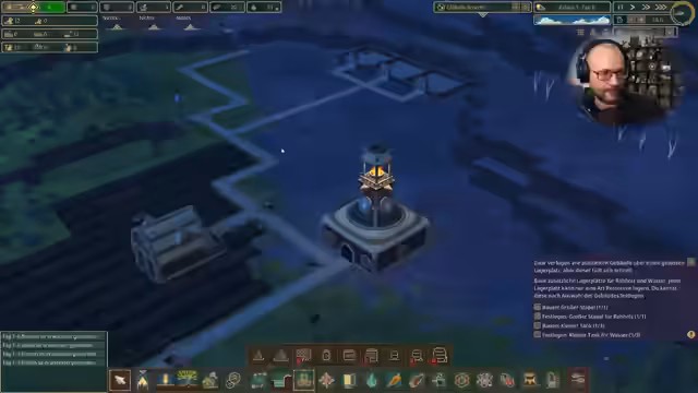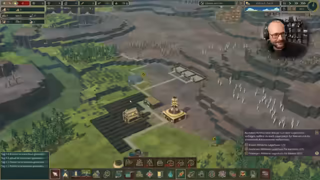 06:23:40Der Streamer folgt dem Tutorial von Timberborn. Er erstellt eine Siedlung namens 'Dentagard' und platziert Holzfällerfahnen. Er entdeckt Ruinen und Metallvorkommen. Das Tutorial erklärt, dass Gebäude mit Pfaden verbunden werden müssen. Er zeigt, wie man Baubereiche erweitert und die Nachtzyklen funktionieren. Es stellt sich heraus, dass Arbeiter nur tagsüber arbeiten. Später platziert er Wasserpumpen am Fluss, stellt aber fest, dass sie direkt am Wasser stehen müssen, um zu funktionieren.