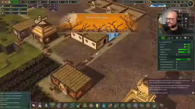 09:12:00Nach dem Dammbau analysiert der Streamer die Wassermechanik: Der Damm reduziert den Durchfluss, hält aber die Landschaft grün. Er testet die Einstellungen für Arbeitszeiten (24 Stunden möglich) und entdeckt Optionen, um Dürren oder Faulwasserfluten im Spiel zu deaktivieren. Dies führt zu einer Debatte über Spielbalance – er bevorzugt gemütliche Baumodus-Spiele ohne extreme Naturkatastrophen.