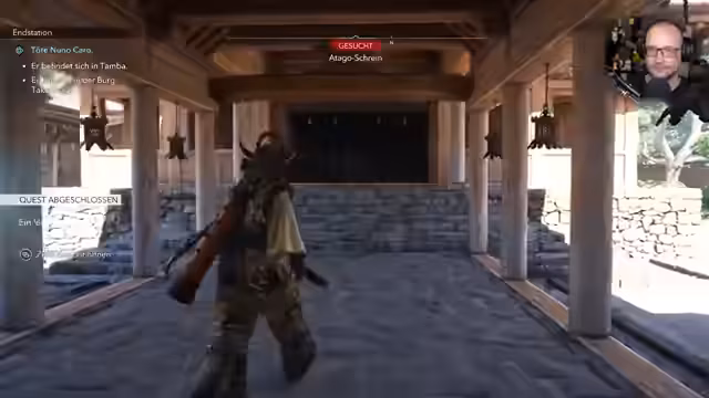 06:48:52Der Streamer begibt sich auf die Mission, den Bruder der Silbernen Königin aus der Burg Kameyama zu befreien. Die Mission erweist sich als äußerst anspruchsvoll, da er sich unbemerkt durch bewachte Bereiche schleichen und mehreren Wachen ausweichen muss. Es kommt zu mehreren Gefechten, in denen er seine Fähigkeiten strategisch einsetzt und teilweise unkonventionelle Wege findet, um die Gegner zu überwinden, wie das Ausnutzen von Bombenfassern und Einsatz von Umgebungsgegenständen.
