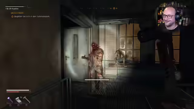 04:58:06Der Streamer erreicht das Kraftwerk und soll den Ausfall untersuchen. Der Vorarbeiter Largo ist noch am Leben. Das Innere des Kraftwerks wird als fantastisch und detailreich beschrieben. Der Streamer muss einen Weg finden, nach oben zu gelangen. Ein Gespräch mit Largo beginnt, der wenig kooperativ ist. Der Streamer findet Largos Jacke toll. Es wird ein Gebäude anvisiert, um ein kaputtes Fenster zu erreichen. Der Streamer kämpft sich durch Gegnerhorden, wobei der verursachte Schaden nicht sehr hoch ist. Es wird festgestellt, dass die Atmosphäre im Spiel sehr gut ist. Der Streamer findet Loot und diskutiert über die Helmpflicht. Es wird ein Hilferuf ignoriert und der Streamer erkundet das Gebiet weiter. Der Weg zum kaputten Fenster ist schwierig und erfordert Klettergeschick.
