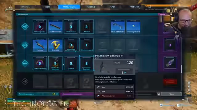 02:02:22Nach dem Fund eines legendären Drachenrieseneis und anderen seltenen Items werden die Technologiefortschritte vorangetrieben. Mit dem Bau des 'elektrischen Hochofens' können neue, bessere Werkzeuge wie die Palominium-Spitzhacke hergestellt werden. Um die notwendigen Ressourcen und Technologiepunkte zu beschaffen, wird ein Verkaufslauf in der Siedlung gestartet. Dabei wird das Inventar optimiert und wertvolle Gegenstände verkauft, um Platz und Kapital für den weiteren Spielverlauf zu schaffen.