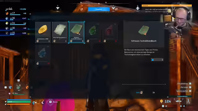 06:14:19Die Zusammenstellung des Teams wird überdacht, indem ältere Pals wie Petalia durch neue wie Wördisch ersetzt werden, die bessere Fähigkeiten für Handwerk und Sammeln bieten. Gleichzeitig wird der Bau einer neuen Waffe, des Sturmgewehrs, vorangetrieben. Dazu werden Polymerplatten und Schießpulver benötigt, wobei die Produktion von letzterem durch Holzmangel verzögert wird.