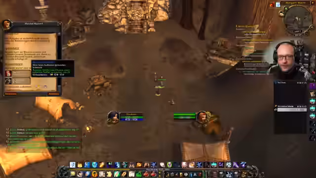 00:44:46Ein Zuschauer meldet ein Problem mit der Gildenbank-Addon, das zu Lua-Fehlern führt. Der Streamer erklärt, dass sein eigenes Addon aktuell funktioniere, aber vermutet ein veraltetes Addon oder die kurze Abwesenheit im Spiel als Ursache. Während dieser Unterhaltung setzt er das Farmen von 'Hydraxianer-Ruf' fort, welcher für die Beschaffung von Wasser-Runen im Molten Core Raid unerlässlich ist. Er betont, dass er sich noch keine Pläne für seine Ausrüstung auf Level 60 gemacht hat.