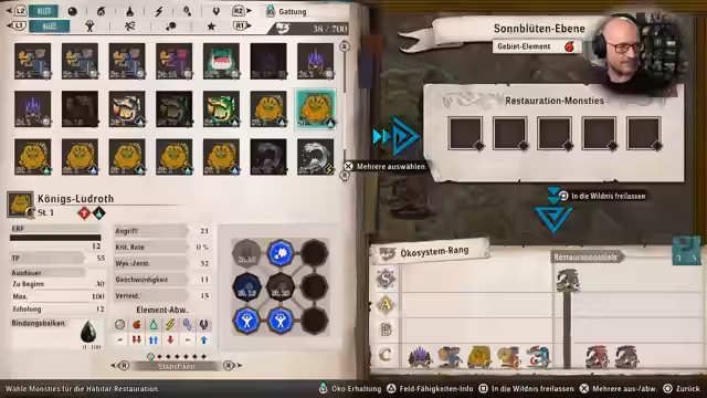 05:07:50Zu Beginn des Streamsegments wird das Konzept der Habitatrestauration erläutert. Diese Funktion ermöglicht die Wiederherstellung des Ökosystems und die gezielte Hinzufügung von Wildnismonstern in bestimmten Gebieten. Dadurch kann der Ökosystemrang eines Monsters festgelegt und erhöht werden, was erhebliche Vorteile mit sich bringt. So werden Eier leichter erhältlich, Monsties können mit einer höheren Stufe, Feldfähigkeiten oder sogar S-Rang-Genen schlüpfen.