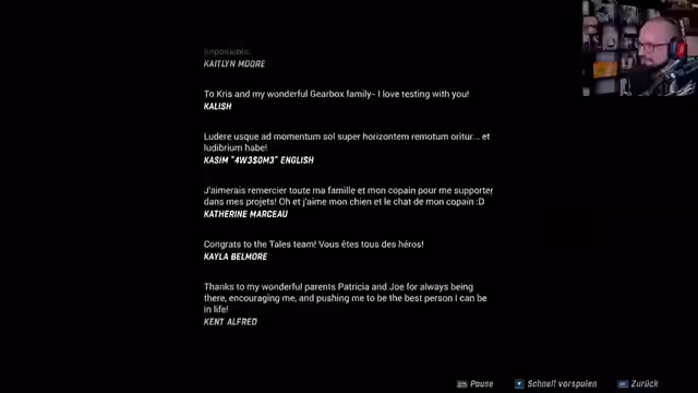 01:42:39Nachdem schlechte Bewertungen des Spiels kurz thematisiert wurden, konzentriert sich die Aufmerksamkeit auf die aktuelle Spielsituation. Es wird ein Terminal gehackt, wobei der Charakter nicht von seinem schicken neuen 'Akkodex' lassen kann. Die Gruppe befindet sich in einer Art eridianischer Gedankenzelle, die mit einer suppenartigen Nebelflüssigkeit gefüllt ist, und untersucht ein grünes Licht. Es wird über die Anerkennung für die eigenen Taten und normale Wünsche gesprochen. Die Spielfigur setzt sich mit ihrer Vergangenheit auseinander und bereinigt innere Konflikte, was positiv aufgenommen wird. Es wird der Wunsch geäußert, eigene Probleme ebenfalls so schnell lösen zu können. Die Figur dringt immer mehr durch, während der Streamer sich wünscht, eigene Probleme ähnlich angehen zu können. Es wird spekuliert, ob die Spielfigur Siren-Kräfte entwickeln könnte, was interessant für Borderlands 4 wäre. Die Wände des Gebiets werden als hübsch empfunden, und es kommt zu einer unerwarteten Wendung. Die Auseinandersetzung mit der eigenen Dunkelheit und die Frage nach Siren-Kräften werden thematisiert. Der Abschnitt schließt mit dem Wunsch nach einer schnelleren Lösung persönlicher Probleme und der Bewunderung für die Fortschritte der Spielfigur.