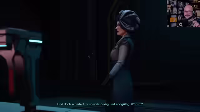 00:14:04Nachdem Ava ihre inneren Konflikte durch die Konfrontation mit ihrer Vergangenheit lösen konnte, findet sie sich wieder in der Gegenwart wieder. Mit ihrer neu gewonnenen Stärke versucht sie, Octavio aus den Fängen von Susan zu retten. Es kommt zu einer Verhandlungssituation, in der Ava Susan erpresst, indem sie sich als Druckmittel anbietet, um Octavio freizupressen. Mit Unterstützung von Fran und einem umprogrammierten Brock, der nun ein 'Freund' ist, gelingt es ihnen, die Wachen auszuschalten und sich Susan zu stellen, um ihre finalen Pläne für einen galaktischen Übergriff zu stoppen.