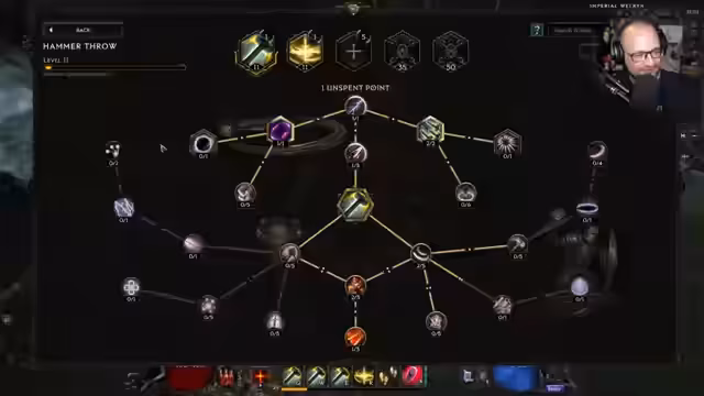 01:36:50Es werden die Passiv-Skill-Punkte und die verschiedenen Skilltrees erläutert, insbesondere die Ascendierungsklassen des Sentinels: Void Knight, Paladin und Forge Guard, wobei die Wahl zunächst auf Paladin zum Leveln fällt. Es wird erklärt, dass man die Mastery in dieser Season ändern kann. Der Hammerwurf wird als Hauptskill zum Leveln festgelegt. Durch Skill Specialization können die Skills angepasst und verändert werden. Es wird demonstriert, wie man den Hammerwurf verbessert, sodass die Hämmer um den Charakter wandern. Die Entscheidung zwischen Trading und Solo-Selfer wird auf später verschoben. Es wird erklärt, dass die Skills auch dann Erfahrungspunkte bekommen, wenn sie nicht aktiv benutzt werden, solange sie im Skill-Menü ausgerüstet sind. Das Spiel kam vor über einem Jahr in die Season 0 und Season 1 war okay, aber nicht die Liebste.