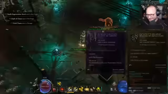 09:21:22Es wird der Loot-Filter getestet und überlegt, diesen in Zukunft selbst anzupassen, sobald mehr Klarheit über die eigenen Bedürfnisse besteht. Die ersten Gegner werden besiegt und die angezeigten Gegenstände begutachtet. Es wird festgestellt, dass grüne Gegenstände wahrscheinlich Schrott sind. Der Lootfilter zeigt große Gegenstände als 'Late Monolith Gear' an. Es wird überlegt, ob bestimmte Items, die nur zum Zerlegen gedacht sind, ausgeblendet werden sollen. Ein neues Rift wird entdeckt und als angenehmer im Vergleich zu früheren Versionen empfunden. Die Nützlichkeit von Gegenständen für das Crafting wird diskutiert, wobei ein eigener Lootfilter bevorzugt wird, um die Kontrolle über die angezeigten Items zu behalten. Es werden Void Damage Items gefunden, die für einen Void Knight Build interessant wären. Versehentlich wird ein Portal geöffnet, was zu einer kurzen Verwirrung führt. Es wird überlegt, ob das Spiel aufgrund des Hammerdin-Builds interessant sein könnte, und Erinnerungen an frühere Diablo-Spielerfahrungen werden ausgetauscht.