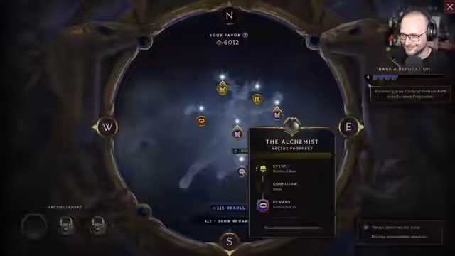 13:17:52Es werden Prophecies ausgesucht, um gezielt nach Gegenständen zu suchen, darunter Idole und Bosse. Es werden verschiedene Prophecies rerollt und ausgewählt, darunter Death of Abomination und Unique Idols. Es wird erwähnt, dass man mit Stufe 5 in der Item Faction Circle of Fortune ist. Es wird eine Quest beendet und die aktiven Prophecies werden erwähnt. Es wird ein Antipodendrache in einer Arena bekämpft und besiegt. Es werden verschiedene Gegenstände gefunden, darunter Boots und Rüstungen. Es wird ein Punkt für den Sieg erhalten. Es wird erwähnt, dass man nicht die komplette Kampagne durchspielen muss, um zu den Monolithen zu kommen. Es wird die Wahl der Circle of Fortune Fraktion erwähnt. Es wird festgestellt, dass man Exalt-Effekte random umrollen kann mit einer neuen Rune. Es wird diskutiert, ob Monolithen zu schwer sind, wenn man sie früh macht.