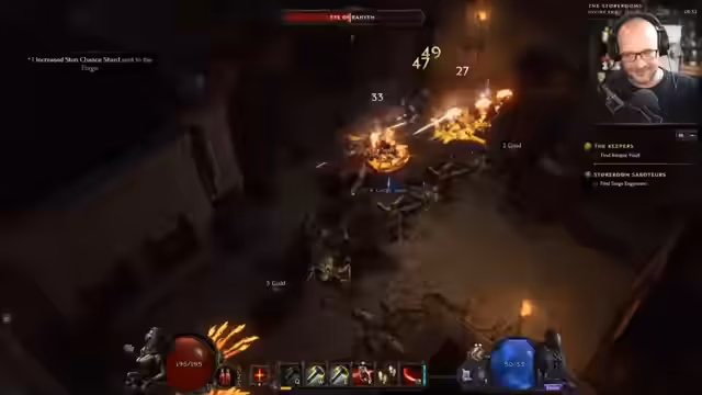 02:33:47Es wird eine Quest angenommen, die je nach Abgabeort unterschiedliche Belohnungen bietet, wobei die Handschuhe bevorzugt werden. Der Dank für Abonnements und Spenden wird ausgesprochen. Der Serverstatus wird diskutiert, wobei es bereits mehrere Abstürze gab, die aber schnell behoben wurden. Es wird empfohlen, das Spiel bei häufigem LE52-Fehler neu zu starten. Ein Nexus-Magier (Rune Prison) wird entdeckt, der experimentelle Gegenstände droppt. Das Fehlen von Schilden bei Gegnern wird positiv hervorgehoben. Ein experimenteller Gegenstand mit einer blauen Verzauberung wird gefunden, der Leben abzieht, aber einen Ward-Schild gewährt. V-Sync wird als mögliche Lösung für Screen Tearing genannt. Ward wurde im Endgame generft, was positiv aufgenommen wird. Eine Quest wird abgegeben, um Handschuhe mit Elemental Resistance und Leech zu erhalten. Ein weiterer Magier wird in einem Gefängnis gefunden und besiegt. Es wird ein Zepter mit erhöhten Minion-Schaden gefunden. Ein Spieler berichtet von einem Rune Master mit 100.000 Wards. Die Echsen werden erwähnt, die Poison- und Lightning Resistance bieten. Die Spawnrate der Echsen wurde generft. Es wird bestätigt, dass alle Mechaniken permanent sind. Die Skillung wird angepasst, um Mana-Probleme zu reduzieren.