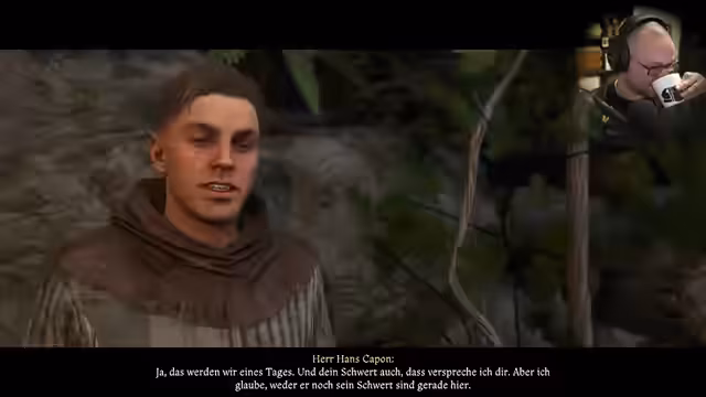 02:37:11Heinrich spricht mit anderen Charakteren über politische Verhandlungen und die aktuelle Lage in Böhmen. König Wenzel ist in Wien gefangen, und sein Bruder Sigismund plündert das Land. Es ist wichtig zu wissen, wer auf der eigenen Seite steht, falls die Situation eskaliert. Von Bergo, der königliche Unterkämmerer, hat die Reservisten unter seiner Kontrolle und somit viel Einfluss. Heinrich unterhält sich mit einem Charakter namens Hafer über die Reise nach Troski und die damit verbundenen politischen Verhandlungen. Ein anderer Charakter, Nikolas von Ratai, begleitet sie auf der Reise und kümmert sich um die Pferde. Es wird die Möglichkeit einer Allianz mit anderen Parteien diskutiert, und Heinrich äußert sich optimistisch über den Empfang. Während der Reise wird ein gewichteter Würfel gefunden, der verdächtig oft auf die Eins fällt. Heinrich trainiert mit Hans im Schwertkampf, um seine Fähigkeiten zu verbessern, da er im ersten Kingdom Come Deliverance schlecht im Kämpfen war. Der Kampf wird als einsteigerfreundlicher, aber dennoch glaubwürdig beschrieben.