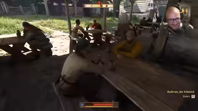 06:00:16Um die Einladung zur Hochzeit von Herrn von Bergo zu erhalten, sprechen sie mit verschiedenen Gästen in der Schenke. Der Streamer bietet seine Fähigkeiten als Schmied an und bekommt einen positiven Kontakt zu Radovan, dem örtlichen Schmied. Gleichzeitig versuchen sie, herauszufinden, wie sie ohne Einladung an das Fest gelangen können und ob es einen Weg gibt, von Bergo direkt zu sprechen. Sie erfahren, dass er auf der Hochzeit erscheinen wird und viele ihn umringen werden.