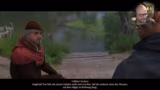 01:45:43Zu Beginn des Spiels muss Heinrich vor einer Überlebensschlacht fliehen und kämpft sich mit seinem Vater Godwin aus einem brennenden Dorf. Der Streamer ist von der actionreichen Einführung beeindruckt. Später trifft die Gruppe auf eine bewaffnete Gruppe, was zu einer Konfrontation führt. Das Spiel stellt dem Streamer nun eine wichtige Wahl zwischen verschiedenen Dialogoptionen zur Konfliktlösung (Überzeugen, Redekunst, Nötigen etc.) und führt ihn in ein Tutorial, wie man ein Würfelspiel spielt.