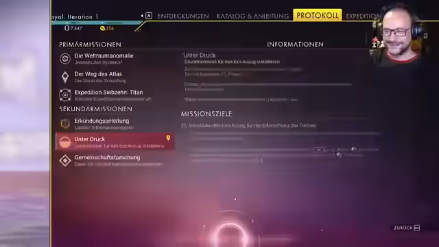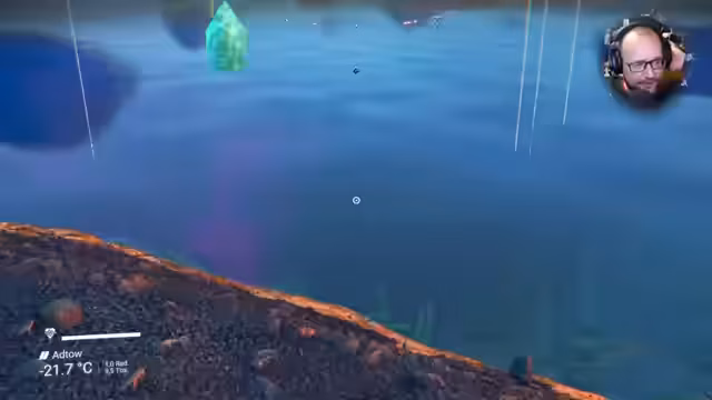 07:40:12Der Fokus verlagert sich auf die laufende Expedition '1001', bei der es darum geht, Ozeantiefe 1001 zu erreichen. Der Streamer ist beeindruckt von der neuen Unterwasser-Welt in No Man's Sky und beginnt damit, die Unterwasserbasis 'Nautilon' zu bauen und mit diversen Ressourcen wie Natrium und Chlorbit auszustatten. Er sammelt verschiedene Kreaturen wie den Helmkrabben, den blutenden Goldfisch und den Kalmar, scannt sie und zeigt, wie man im Tieferwasser vorsichtig agieren muss, da die Energie des Exoanzugs schnell sinkt.