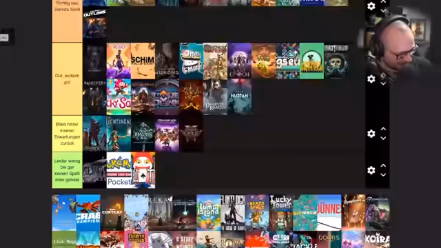 04:30:56Der Titel des vorletzten Spiels auf der Liste wird genannt: Wuchang, Fallen Feathers. Es wird erklärt, dass die Bilder für die Tierlisten selbst erstellt und hochgeladen werden müssen, was den Mangel an einem größeren Bild für diesen Titel erklärt. Der Prozess der Erstellung der Liste wird als angenehm beschrieben. Die erstellte Liste wird gespeichert, um sie später zu veröffentlichen. Die Seite Tiermaker wird als Plattform für die Erstellung solcher Listen genannt. Es wird erwähnt, dass alte Streams auf Twitch-Tracker durchgegangen wurden, um die Liste zu erstellen. Zwei Spiele, Little Garzman und Final Fantasy XIV, wurden anscheinend vergessen, werden aber als sehr weit oben auf der persönlichen Liste stehend erwähnt. Es wird korrigiert, dass Hell is Us kein Horror-Game ist, sondern ein Open-World-Erkundungsspiel ohne Map- und Questmarker, was eine Fehleinschätzung darstellt. Es wird bedauert, dass das Studio hinter einem bestimmten Spiel von Microsoft geschlossen wurde. Die Hoffnung wird geäußert, dass am Ende des Jahres überprüft werden kann, welche der hochgehypten Spiele tatsächlich gut waren. Es wird zugegeben, dass die Erstellung der Liste länger gedauert hat als erwartet, was auf die Tendenz zurückzuführen ist, ins Labern zu geraten. Die Idee, die Liste live im Stream zu erstellen, wird Simon zugeschrieben, was dazu führte, dass noch mehr Spiele recherchiert wurden. Es wird spekuliert, ob Holly bereits eine ähnliche Liste erstellt hat. Die Schwierigkeiten und negativen Reaktionen bei der Erstellung von Tierlisten, insbesondere im Filmbereich, werden angesprochen. Es wird erwähnt, dass ein Zuschauer We Become What We Behold gespielt hat, ein Spiel, das immer noch aktuell ist. Die Liste wird einem Zuschauer per Whisper auf einer Plattform seiner Wahl zur Verfügung gestellt. Es wird scherzhaft angeboten, den Dödel (als Spitzname) an einen Zuschauer zu geben. Es wird zum Spiel Palworld übergegangen, wobei die Musik ausgeschaltet und die volle Konzentration darauf gerichtet wird.