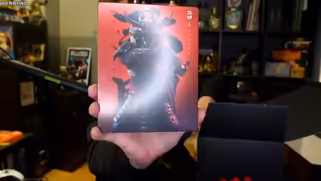 00:42:59Nachdem die Wartezeit auf das Embargo verstrichen ist, beginnt der Streamer damit, zwei von Ubisoft gesendete Pakete auszupacken. Beim ersten Paket handelt es sich um die Steelbook-Variante des Spiels, ein Artbook, eine Karte, Postkarten und eine hochwertige Parierscheibe aus Metall. Beim zweiten Paket befindet sich ein umfangreiches Merchandise-Sortiment, inklusive T-Shirts, Hoodies und einem one-to-one-Scale-Replica der Hidden Blade. Der Streamer zeigt sich begeistert von der Detailtreue und der Qualität der geschenkten Gegenstände.