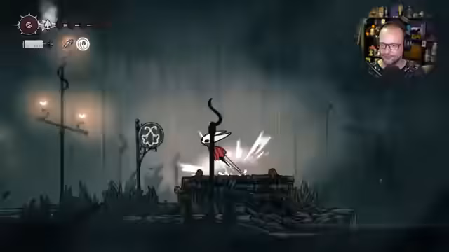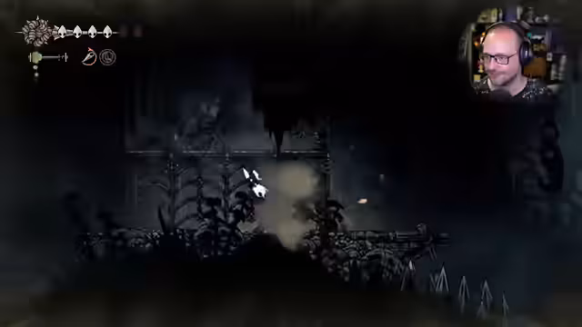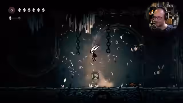 04:12:51Die Person entdeckt einen Kakerlakenhüter mit einem schweren Kettenlasso und findet einen Geheimgang hinter einer geheimen Wand. Die Musik erinnert an Secret of Mana. Sie betritt ein neues Gebiet mit Fallen und trifft auf einen Gespenst, der durch starke Angriffe vorübergehend vertrieben werden kann. Die Person findet den Gegner super und mag den Schrei und die Animation dazu. Sie erkundet weiter und gerät in eine Falle mit Spikes, die sie zu spät sieht. Sie stirbt und verliert ihre Gebetsperlen. Die Person vermutet, dass es ein Problem mit ihrer Steuerung gibt, da sie die Taste mehrmals drücken muss. Sie holt einen neuen Controller und versucht es erneut.