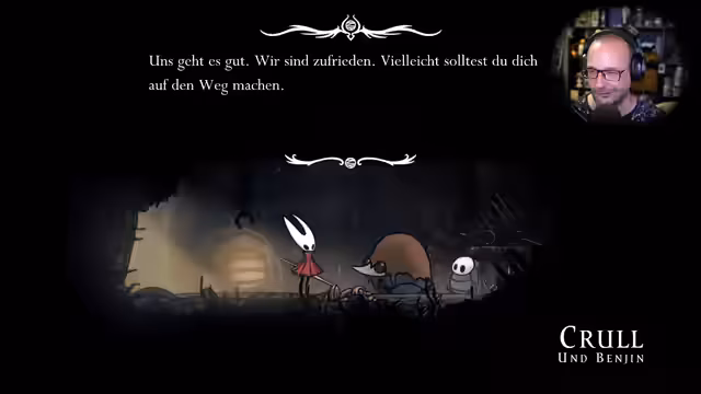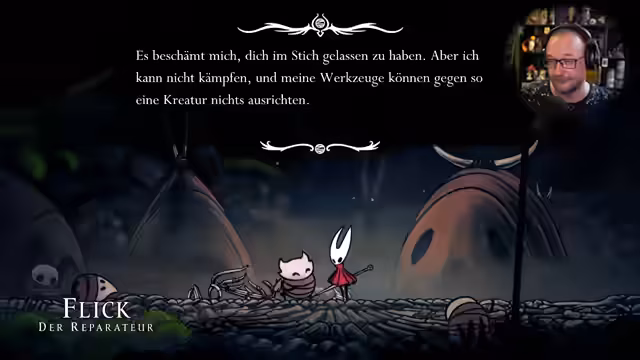 02:28:08Es wird ein Gebiet erkundet, in dem sich zuvor zwei Charaktere befanden, und die Notwendigkeit betont, nicht mühsam nach ihnen suchen zu müssen. Der Protagonist bringt sich kurzzeitig Lebenspunkte zurück und vermeidet es, sich von Gegnern um den Verstand bringen zu lassen. Es wird festgestellt, dass die Positionen einiger Objekte im Spiel geändert wurden, was zu Verwirrung führt. Nach der Rückkehr zu einem Wissenschaftler wird die Frage eines Zuschauers, was verpasst wurde, abgetan. Der Protagonist interagiert mit dem Wissenschaftler und erhält die benötigte Menge Plasmium. Es wird ein Plasmiumfläschchen als Belohnung erhalten, das zur Injektion von Plasmium in den Körper dient, um sich vor Schaden zu schützen. Die Navigation durch ein unangenehmes Gebiet mit Gewürm und Gekrabbel wird thematisiert, wobei das Tiefennest in Hollow Knight als noch schlimmer empfunden wird. Es wird die Entdeckung eines Rituals und einer Grabkammer kommentiert, wobei der Gedanke an fehlende Gebetsperlen für den Verstorbenen aufkommt.