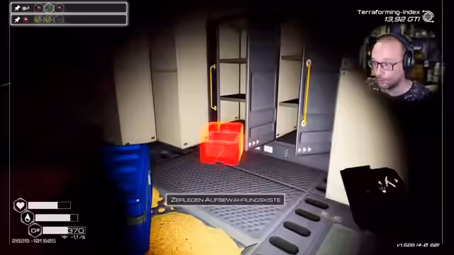 09:35:50Die Welt wird als Lagerhaus betrachtet, während Sportfahrräder und Bildschirme gefunden werden, die an eine Überwachungseinrichtung erinnern. Ein Mikrochip-Bauplan für ein Indoor-Fahrrad wird entdeckt, aber nicht weiter beachtet. Die Größe des Spiels und die vielen Entdeckungsmöglichkeiten werden hervorgehoben. Es wird nach einer Möglichkeit gesucht, einen Chip einzusetzen, und ein Mikrochip-Bauplan für einen Mülleimer gefunden. Ein großer Tisch und eine Statue werden entdeckt und für die Sammlung vorgesehen. Es wird eine Stelle gefunden, an der Energie benötigt wird, und ein Tresor vermutet. Eine kleine Kiste wird gesucht, aber stattdessen Essen und Trinken gefunden. Ein Snuber und eine Arbeitsplatte werden mitgenommen, um später Sauerstoff zu holen. Es wird gehofft, in den Gängen eine kleine Kiste zu finden, und über das versehentliche Drücken der Windows-Taste gescherzt. Die Meteoriten werden erwähnt und Platz im Inventar geschaffen, um wieder nach Hause zu gehen.