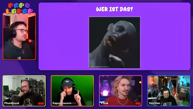 01:40:38Stan löst ein Bilderrätsel mit 400 Punkten, bei dem Hideo Kojima (Vater von Metal Gear Solid) erkannt wird. Für 'All Around Games 600' wird der Mortal-Kombat-Erfinder Ed Boon identifiziert. Bei 'Emoji Games 400' muss der Spielname anhand von Emojis rekonstruiert werden, was als 'Alan Wake' (A-Plug) gelöst wird – eine als schwierig bewertete Aufgabe, bei der viele Zuschauer ratschlagen.