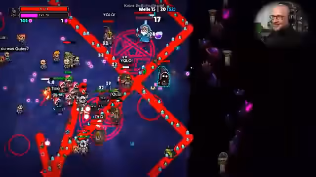 03:29:16Im späteren Teil des Streams, bei Welle 15, werden die Gegner stärker und der Streamer passt seine Taktik an. Er scherzt, dass das Wort "FF" im Spiel zu einer Chat-Beschränkung führen könnte. Er testet seine Synergien weiter, wie "Pentagramm" für einen zweiten Ritualkreis, und interagiert intensiv mit dem Chat, nachdem er seine Brille abgenommen hat und blind spielt. Er beendet die Welle erfolgreich.