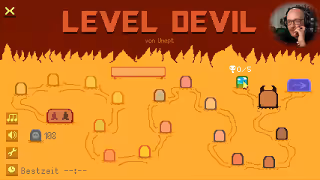 02:46:53Der Streamer stellt das Spiel Level Devil vor, das er vor etwa einem Jahr bei Jodarum entdeckt und auf seine Liste gesetzt hat, danach aber vergessen hatte. Er lobt den schicken Namen und beginnt mit dem Spiel. Er beschreibt das simple Steuerungsprinzip, den minimalistischen Atari-2600-artigen Stil und stellt die Einstellungen wie Lautstärke und Sprache vor. Das Ziel ist es, mit der Figur Knorpel in die Tür zu gelangen.