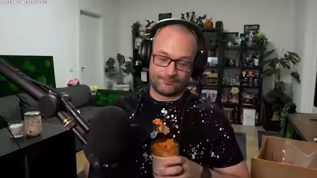 01:17:02Der Stream startet mit einer ungewöhnlichen Anekdote über einen erschreckenden Moment am Türklingel, der Appetit und Unwohlsein auslöste. Ungeachtet dessen vertiefte sich die Unterhaltung in bizarre Essgewohnheiten und Selbstversuche, wie das Binden der Hände, um das Leben absichtlich zu erschweren. Es folgte eine detaillierte und kritische Verkostung von 'Protein-Pop-Chips', deren Geruch und Geschmack stark voneinander abwichen, sowie die Suche nach einem scheinbar verschwundenen Proteinriegel.