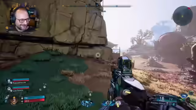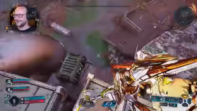 01:52:54Es beginnt mit einer Begegnung mit dem Zeitwächter, der die Spieler in sein Universum einführt und ihnen einen neuen Zweck zuweist. Anschließend erkunden die Streamer die Spielwelt, wobei Kapuzenwurm dem Team beitritt. Es folgen erste Einstellungen der Mausempfindlichkeit und Lautstärkeanpassungen, um ein angenehmes Spielerlebnis zu gewährleisten. Die Grafik wird gelobt, insbesondere der Sailshade-Look, der dem Borderlands-Stil treu bleibt. Die Vorfreude auf 'richtig dumme Quests' wird geäußert und die Frage nach Crossplay wird positiv beantwortet. Nach dem Ableben eines Spielers erfolgt ein Respawn an einer Station. Die Streamer töten erste Gegner und loben den Blutgehalt im Spiel, während sie Roboterarmeen bekämpfen. Ein rotes Objekt am Boden wird entdeckt, das den Weg zum Sicherheitsraum weist. Es wird über das Weglooten von Gegenständen gescherzt und die Möglichkeit des Doppelspringens und Nahkampfes wird erkundet. Allerdings wird der Waffenmodus kritisiert. Es wird festgestellt, dass der Loot nicht geteilt wird, was zu Überlegungen führt, wie Waffen getauscht werden können. Die Möglichkeit, Waffen als Schrott zu markieren und automatisch zu verkaufen, wird positiv hervorgehoben.