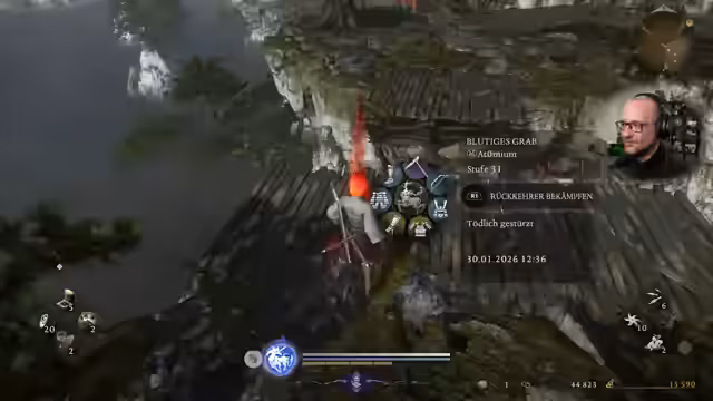 06:57:27Er erkundet ein Boot, das als 'geiles gegnerisches Basis' beschrieben wird. Dabei hofft er auf wertvollen Loot und reist über rote Fässer, die explodieren könnten. Er erklärt die Konsequenzen des Todes im Spiel: Beim zweiten Tod verliert man die gesammelten Amrita ohne die Chance, sie an einem Grab einzusammeln. Nachdem er das Boot erkundet hat, kehrt er zurück zum Kampf.