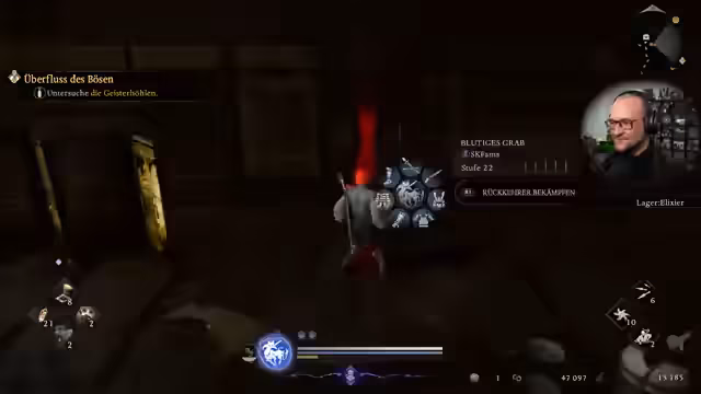 01:35:21Der Streamer entdeckt ein niederes Fegefeuer, ein sicheres Gebiet, in dem keine Gegner anwesend sind. Hier wird das System der Lebenskorrosion erklärt, das die maximale Gesundheit des Spielers reduziert. Durch das Besiegen von Gegnern und das Zurückkehren zum Schrein kann dieser Verlust reduziert werden. Gleichzeitig wird das neue Mechanik-System der Schutzgeistfähigkeiten vorgestellt, das Geisteskraft verbraucht, um bestimmte Effekte zu aktivieren.
