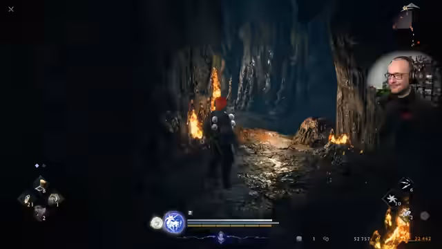 06:18:47Der Streamer erkundet eine wunderschöne Burg in Nioh 3, wobei er seine Feinde meist durch Schall und Geräusche vor deren Sicht wahrnimmt. Er wechselt häufig zwischen verschiedenen Kampftechniken und Angriffen, wobei er insbesondere seine "süßen neuen Freunde", also seine Waffen, effektiv einsetzt. In den Kämpfen konzentriert er sich auf Ausweichen und Effektivität, anstatt den Schaden der eingesetzten Kapseln zu analysieren, und beschreibt die Kämpfe als abwechslungsreich und gelegentlich chaotisch.