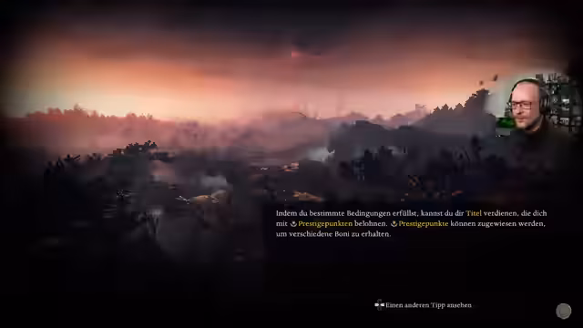 05:09:28Entdeckt wird das Titel- und Prestigesystem des Spiels. Durch das Freischalten von Titeln, die durch das Erfüllen bestimmter Bedingungen verdient werden, können Prestigepunkte erhalten werden. Diese Punkte können im Hauptmenü als Boni, wie z.B. reduzierter Ki-Verbrauch, zugewiesen werden und können jederzeit zurückgesetzt werden. Der Streamer präsentiert die Vielzahl an verfügbaren Boni-Kategorien, darunter Ki-Management, Nahkampfschaden, Elementarschaden und Boni für das Fegefeuer.
