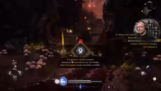 03:13:58Der Streamer kämpft gegen den Boss Ippondatara, einen feurigen Gegner, dessen rote Angriffe er als besonders herausfordernd empfindet. Nach mehreren Versuchen und einem kleineren FPS-Einbruch wird der Boss schließlich besiegt, woraufhin die Fähigkeitenkapazität erhöht wird und er neue passive Samurai-Fähigkeiten wie 'Belebtes Wasser' freischaltet.